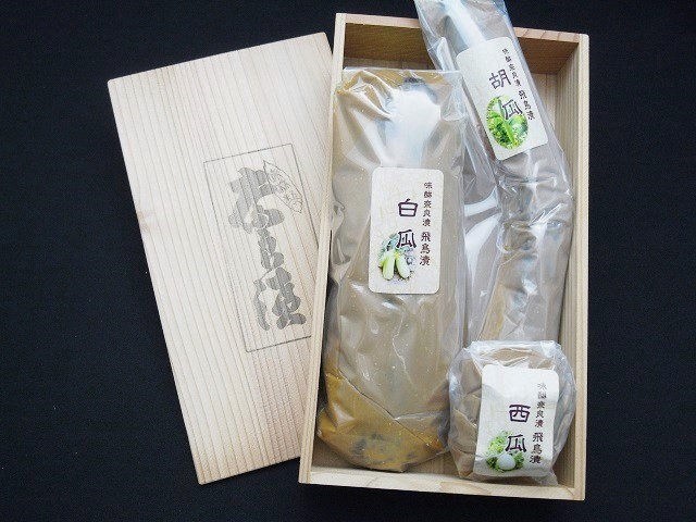 あすかづけ匠な味わい杉箱ギフト!飛鳥漬 白瓜・胡瓜・西瓜 各1個入